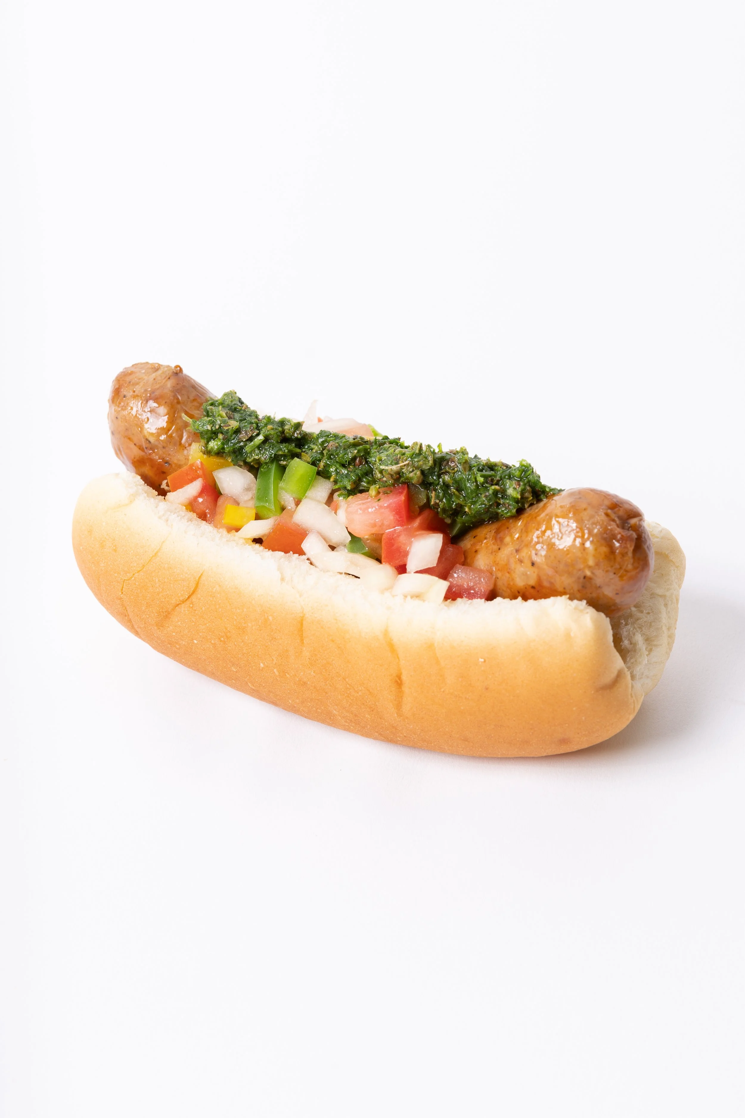 Signature Argentinian chorizo topped with a vibrant and fresh salsa criolla, and its most iconic flavour-bomb partner-in-crime: chimichurri